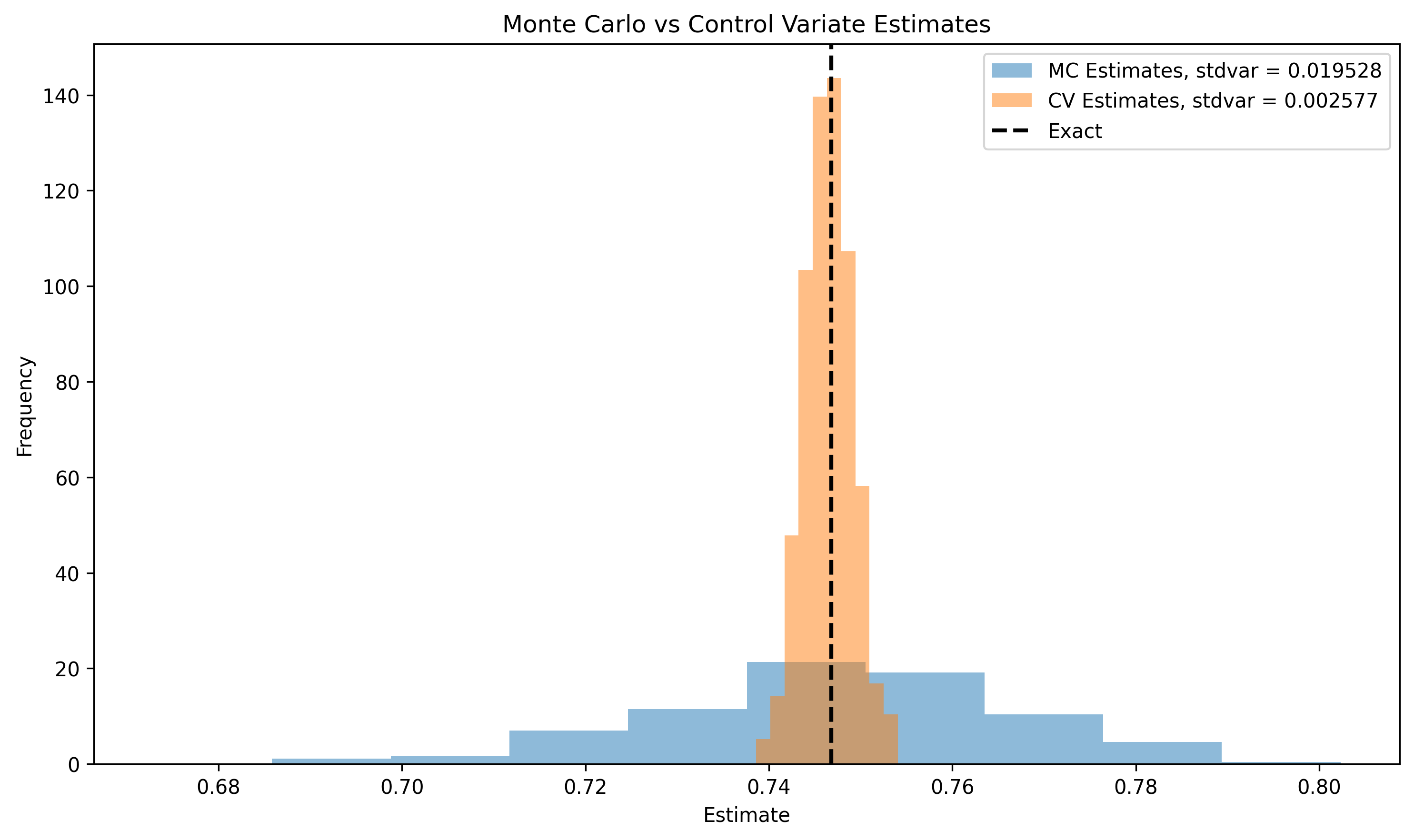 Variance comparison (left) and correlation structure enabling control variates (right).