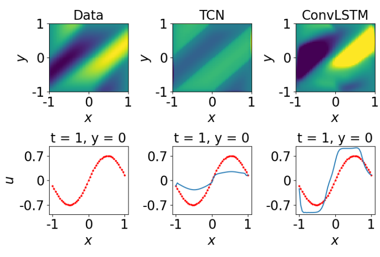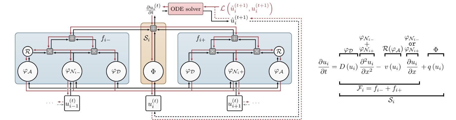 We replicated the FINN architecture to solve spatiotemporal partial differential equations, confirming its strong generalization and robustness. Experiments on Burgers', Allen–Cahn and diffusion-sorption systems showed FINN outperforming ConvLSTM, TCN and other baselines even with noisy data and longer prediction horizons.